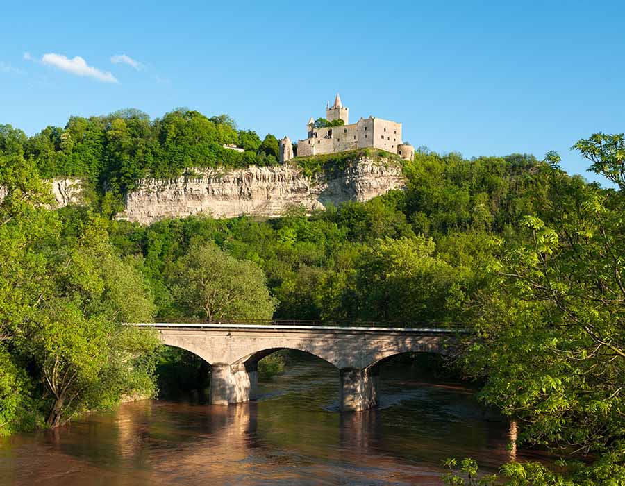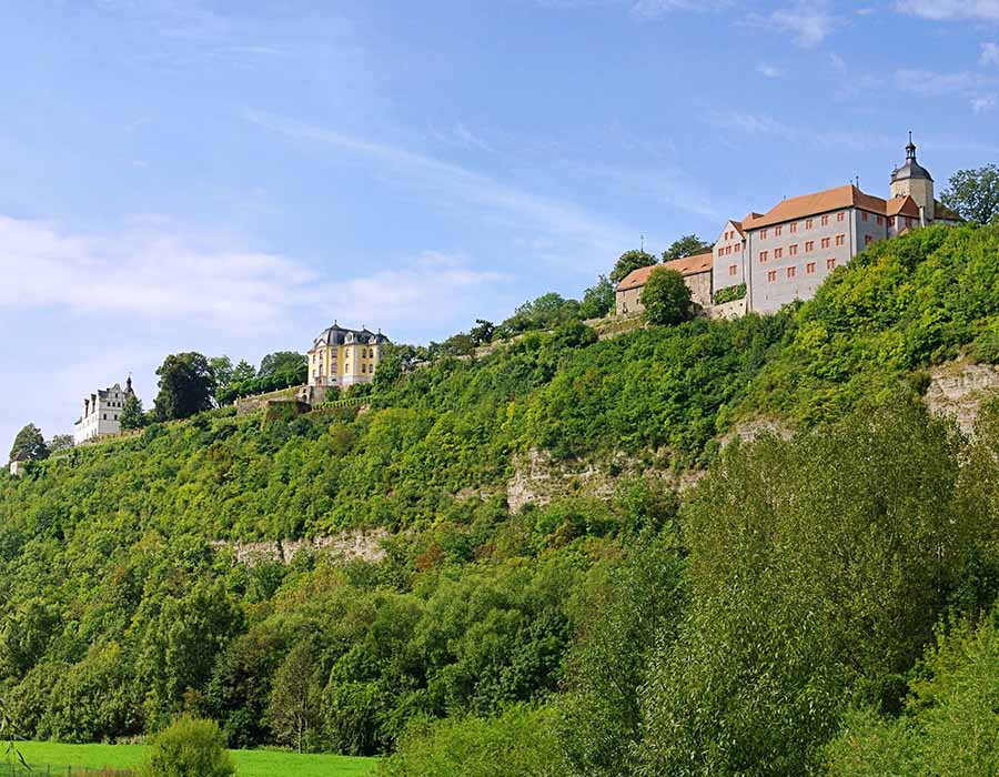 Vanochtend bezoeken we de Dornburger Schlösser, drie elegante kastelen op een hoge rotsrug boven de Saale. De terrastuinen behoren tot de mooiste van Thüringen en bieden een adembenemend uitzicht over het rivierdal. Een gids in historisch kostuum verwelkomt u en neemt u mee naar vroegere tijden. U wandelt door rozenperken, langs sierlijke paviljoens en over beschutte wandelpaden die ooit door vorsten en dichters werden bewandeld. Na de lunch maken we een panoramische rit door de Saalevallei. Dit gebied staat bekend om zijn zachte heuvels, wijngaarden en grillige rotspartijen. We maken enkele korte stops bij mooie uitkijkpunten, zoals de Jenzig of Kunitzburg, zodat u volop kunt genieten van het landschap.
